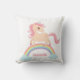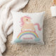 Ein Throwkissen mit einem niedlichen und hübschen kleinen Unicorn mit dem üppigen rosa gelockten Haar auf eine Regenbogenbrücke über zwei Wolken. Personifizieren Sie mit dem Namen des kleinen Mädchens für ein dekoratives Stück des einzigartigen Raumes.