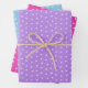 Dieses Set aus Papierfolie weist ein niedliches, winziges Herzmuster in rosa, lila und blau auf. Perfekt, um Geschenke für den Valentinstag zu verpacken!