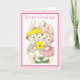 Diese Grußkarte zeigt eine Vintage Abbildung eines Paares niedlicher Osterbüscheln mit rosa Rahmen. Der Gruß auf der Vorderseite, in rosa Schrift, ist anpassbar, ebenso wie der Gruß im Inneren.