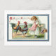 Niedlicher Vintager Osterhen, Rooster & Girl Postkarte