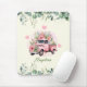 Niedlicher Vintager rosafarbener Blumenwalzenwagen Mousepad