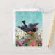 niedlicher Vogel mit blauen Augen über Blume Postkarte