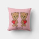 Dieses Kissen hat zwei niedliche braune Bären mit rotem Herzen in ihren Armen. Von Hand gezeichnet. Ein schönes, personalisierbares Geschenk für viele Anlässe! Ein Geschenk zum Valentinstag, ein neues geborenes Baby, Geburtstage und vieles mehr.
