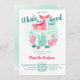 Kommen Sie zu uns für einen Wal der guten Zeit! Genießen Sie Ihre Babydusche mit diesem niedlichen handbemalten rosa Wal, mit Korallen, Sternfischen und Wasserblasen in Aquarell. Ein skurriler unter dem Meeresthema mit moderner Schrift-Kalligrafie.