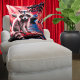 Ein prächtiges, rustikales Waldtier verwandelt sich in lebendiges Rot, um die Schönheiten auf eine andere Weise zu unterstreichen. Mit roten Glitzern für Augen und krause Blätter und Glitzern im Wald hinter diesem verschwommenen Engel ist dies ein 20" x 20" Baumwollkissen wie kein anderes! Erhältlich in Polyester, Lumbar und 16" x 16" Größen.