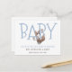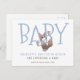 Eine niedliche und skurrile einzigartige whimsical Typografie und Aquarellwald Fuchs Schwangerschaftsankündigung in blau und braun. Weich gedämpfte Farbe Blau und helle Kakaobräune.