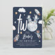 Super niedliche Woodland Animal Space Thema 2. Geburtstag Einladung. Der Titel "ZWEI", der einen Mond enthält, ist mit bezaubernden Waldtieren wie Astronauten, Raketen, Sternen und Wolken geschmückt. Die trendige Vorlage ist eine Kombination aus handgeschriebenem Schrift und serifenweißen Schriftart. Der gesamte Text lässt sich mit der bereitgestellten Vorlage leicht anpassen.