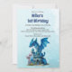 Niedlicher Wasserfarbenblauer Drache 1. Geburtstag Einladung