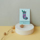 Ein lustiger gemusterter Weihnachtsweihnachtssang in Rosa und aquamarin mit einem Haufen Heiliger. Das Design ist personalisiert mit einem Namen und Gruß, die beide geändert werden können. Das Design befindet sich auf einem hellblauen Hintergrund auf der Vorder- und Rückseite und das kann auch geändert werden.