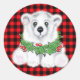 Niedlicher Weihnachtsbär Heilige Kranz kariert Runder Aufkleber