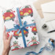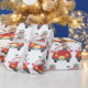 Dieses niedliche und farbenfrohe Packpapier zeigt eine skurrile Winterthemenillustrierung eines bezaubernden Bären und Schneemanns, der in einem roten Auto fährt. Personalisieren Sie es mit Ihrem Namen in einem Retro-Schriftart. Tolle Geschenkidee!