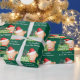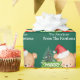 Niedliches Weihnachtspapier mit Babybär mit Weihnachtsmannmütze und Weihnachtsbaum auf grünem Hintergrund. Ideal für Kinder mit ihren Namen.