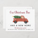 Niedlicher Weihnachtsbaum im Roten Auto Feiertag Ankündigung Postkarte