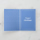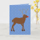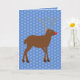 Diese phantastische Karte zeigt ein grafisches Design-Bild eines niedlichen Weihnachtsschreiners mit einer leuchtend roten Nase. Die Rentiere ist braun und zornig, sie hat große Geweihe und dunkelbraune Hufe. Ihr Auge ist schwarz und sie hat ein großes Lächeln auf dem Gesicht. Es gibt Schneeflocken rund um den Rentier und der Hintergrund ist blau.
