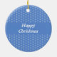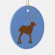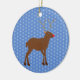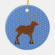 Dieses Ornament zeichnet sich durch ein grafisches Design-Bild eines niedlichen Weihnachtsredeers mit einer leuchtend roten Nase aus. Die Rentiere ist braun und zornig, sie hat große Geweihe und dunkelbraune Hufe. Ihr Auge ist schwarz und sie hat ein großes Lächeln auf dem Gesicht. Es gibt Schneeflocken rund um den Rentier und der Hintergrund ist blau.