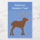 Dieses phantastische Set von Lebensmitteletiketten zeichnet sich durch ein grafisches Design eines niedlichen Weihnachtsredeers mit leuchtend glänzender roter Nase aus. Die Rentiere ist braun und zornig, sie hat große Geweihe und dunkelbraune Hufe. Ihr Auge ist schwarz und sie hat ein großes Lächeln auf dem Gesicht. Es gibt Schneeflocken rund um den Rentier und der Hintergrund ist blau.
