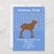 Diese phantastische magnetische Party Einladung zeichnet sich durch ein grafisches Gestaltungsbild eines niedlichen Weihnachtsredeers mit einer leuchtend roten Nase aus. Die Rentiere ist braun und zornig, sie hat große Geweihe und dunkelbraune Hufe. Ihr Auge ist schwarz und sie hat ein großes Lächeln auf dem Gesicht. Es gibt Schneeflocken rund um den Rentier und der Hintergrund ist blau.