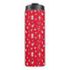 Schöner Thermalwäscher für diese kommende Saison. Das Muster der Weihnachtselemente von Geschenken, Sternen und Ziergegenständen ist in Schwarz und Weiß gehalten, während der Hintergrund in einer leuchtend roten Farbe ist. Illustriert und entworfen von Patricia Alvarez.