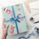 Dieses niedliche Weihnachtsverpackungspapier enthält bezaubernde Flamingos mit Weihnachtsmannmütze, Schneeflocken und Ornamenten. Die Hintergrundfarbe kann durch Klicken auf "Design bearbeiten" geändert werden. Ideal, um diese Geschenke zu verpacken.