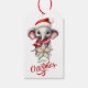 Das niedliche Bild dieses Weihnachtsgeschenktafels ist von einem bezaubernden Elefanten mit einem rot-weißen Weihnachtshut und Winterschal. Der kleine Elefant hat einen goldenen Stern vor sich. Im stilisierten Text unten auf der Vorderseite steht "Frohe Weihnachten" in grün und rot. Die Rückseite des Tags hat das gleiche Elefantenbild, mit Ihrem benutzerdefinierten Text.