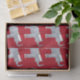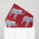 Niedliches Weihnachtspapier mit einem schönen grauen Elefanten, der eine rote Weihnachtsmannmütze auf einem roten Hintergrund für Weihnachten trägt. Ich Liebe lustige Ferientiere.