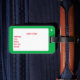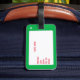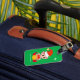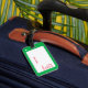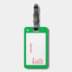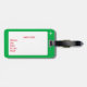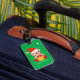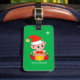 Niedliche Weihnachtself mit einer Geschenkboxen und einem Stern auf dem grünen Gepäcktag. Alle Texte sind personalisiert.