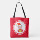 Niedliches Weihnachtself umgeben von Herzen auf der roten Tote Tag.