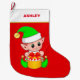 Niedlicher Weihnachtself und Geschenkboxen auf Rot Großer Weihnachtsstrumpf