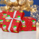 Niedlicher Weihnachtself und Schneeflocken auf Rot Geschenkpapier
