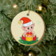 Niedlicher Weihnachtself und Stern auf Elfenbein Keramik Ornament