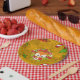 Ein niedlicher Cartoon-Fuchs, der in einem Weihnachtskranz sitzt, umgeben von heiligen und Bonbons, um eine Touch von bezauberndem Launen zu Weihnachten in diesem Jahr hinzuzufügen.