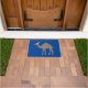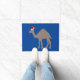 Diese phantastische Türmatte zeichnet sich durch ein digitales Kunstbild eines niedlichen sandbraunen Dromedary Camels mit schönen langen Wimpern und einem Single-Höcker auf seinem Rücken aus. Das Kamel ist zum Weihnachtsfeiern mit einer rot-weißen Weihnachtsmannmütze auf dem Kopf gekleidet. Das Kamel ist in der Bibel zu sehen und ein traditionelles Symbol für Weihnachten.