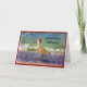 Weihnachtskarte mit einem niedlichen Wasservogel auf einem tropischen und sandigem Strand, mit einer Weihnachtsmannmütze. Personalisieren Sie die Vorderseite und die Innenseite mit Ihrem eigenen Text.