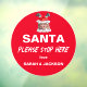 Niedlicher Weihnachtsmann bitte hier aufhören Kinder heißt Weihnachten. Personalisieren Sie Ihre Namen mit Ihren Kindern. Mit einem lustigen Weihnachtsmann auf dem Kopf in der Kamin-Illustration.