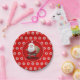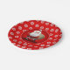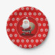 Dieser festliche rote PapierTeller, der mit großen weißen runden Schneeflocken und glücklichen einem Weihnachtsmann schleicht in der Mitte mit seinem Sack voll Geschenke gedruckt wird, ist einer der Schlüsselbeiträge zu einem perfekten WeihnachtsParty.