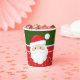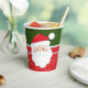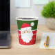 Niedlicher Weihnachtsmann gegenüber den roten grün Pappbecher