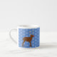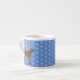 Diese phantastische Espresso-Tasse zeichnet sich durch ein grafisches Design-Bild eines niedlichen Weihnachtsredeers mit einer leuchtend roten Nase aus. Die Rentiere ist braun und zornig, sie hat große Geweihe und dunkelbraune Hufe. Ihr Auge ist schwarz und sie hat ein großes Lächeln auf dem Gesicht. Es gibt Schneeflocken rund um den Rentier und der Hintergrund ist blau.