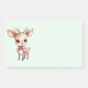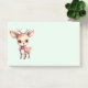 Sticky Notizen mit einer Illustration eines bezaubernden Hirsches. Große Augen große Ohren mit einem großen Kopf und kleine braune Geweihe. Tragen Sie einen großen roten Bogen.