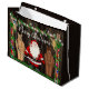 Diese niedliche Weihnachtsgeschenktasche präsentiert den Weihnachtsmann mit zwei niedlichen Pferden in einer charmanten Scheune, die für die Ferien dekoriert ist. -