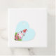 Bevorzugen Sie Tags mit einem niedlichen und weich gestalteten Design mit einem anmutigen Pinguin, der eine rote Weihnachtsmannmütze trägt. Stehend hinter einem Strauß von Blume mit rosa und weiß gestreiften Bonbons.