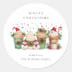 Niedlicher Weihnachtsschneemann Watercolor Classic Round Sticker Der klassische, einfache und festliche Rundaufkleber mit lustigen Schneemännern und Eiscremes mit botanischen Weihnachtsdetails und einem stilvollen Schriftart.