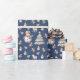 Feierliche Urlaubspapiere mit einem bezaubernden Design von Schneemännern, Weihnachtsbäumen, Lebkuchenmännern und Rockpferden. Der blaue Hintergrund macht es zu einer perfekten Wahl, um das Weihnachtsgeschenk der Kinder zu verpacken, ideal, um sich während der Ferienzeit zu vergnügen.