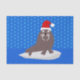 Dieses phantastische Papiertaschentuch zeigt ein grafisches Bild eines niedlichen kleinen Weihnachtswalrus. Der Walrus hat braunes Fell mit großen schwarzen Augen und weißen Stoßzähnen. Es sitzt auf einem Eisberg mitten im Ozean und trägt einen rot-weißen festlichen Hut. Der Walrus ist umgeben von hübschen achteckigen blauen Schneeflocken, die um ihn herum fallen.
