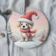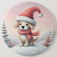 Niedlicher Weihnachtswelpen in der Weihnachtsmannm Button