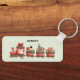 Eine Schlüsselkette mit einem niedlichen und bezaubernden Bild aus Aquarellfarben. Santa fahren einen Zug voll mit Spielzeug für alle Kinder der Welt.