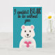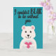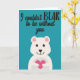 Die niedliche Valentinenkarte mit einem hübschen weißen Bären aus Cartoon, der auf hellblauem Hintergrund ein rosafarbenes Herz trägt, und einer lustigen Wortpun-Beschriftung, die lautet: "Ich könnte nicht ohne dich sein". Ideal für den Valentinstag oder andere wichtige Anlässe wie Jahrestage oder Geburtstage.
