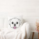 Niedlicher weißer Bichon Frise Hund klebt Zunge he Kissen