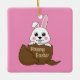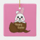 Niedlicher Weißer Hase im Schokoladeneier glücklic Keramikornament
