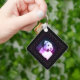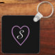 Niedlicher weißer Hund Lila Herzen Frame Valentins Schlüsselanhänger