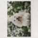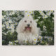 Niedlicher weißer Hund Sitzender Frühlingsblütenga Puzzle